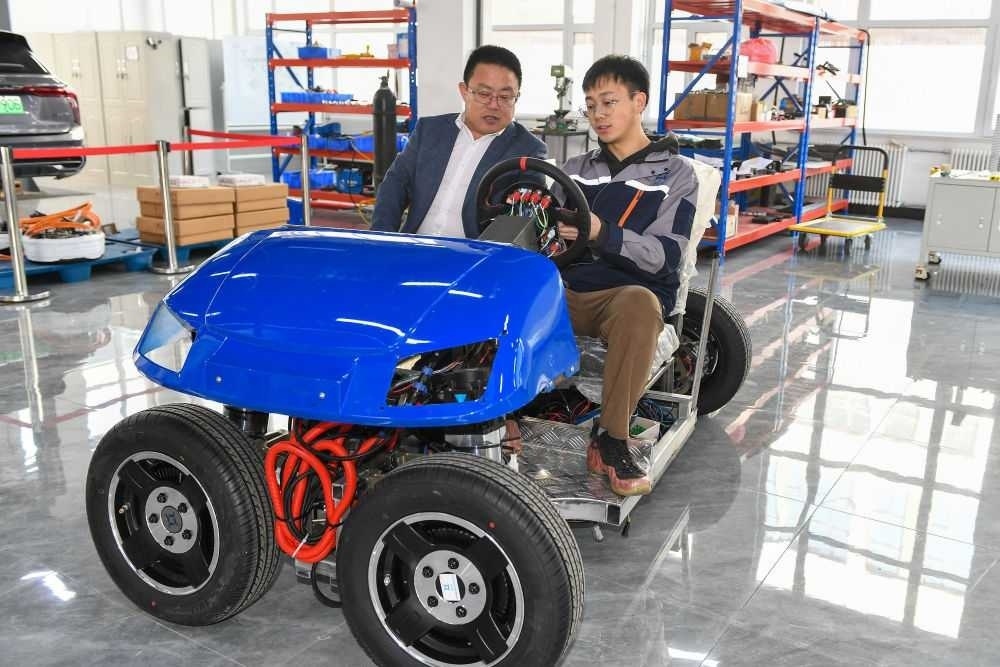 2024年3月13日,在吉林長春一家汽車科技企業(yè),吉林大學(xué)汽車工程學(xué)院教授靳立強(qiáng)(左)試乘智能底盤樣車。2023年,長春市科技局和吉林大學(xué)共建吉林大學(xué)概念驗(yàn)證中心,一手對(duì)接高校,一手對(duì)接企業(yè),確??蒲谐晒诩夹g(shù)路線和商業(yè)模式上的可行性,實(shí)現(xiàn)“從0到1”的轉(zhuǎn)化。