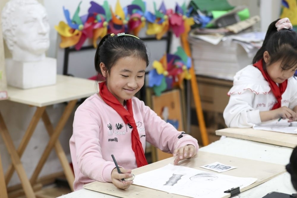 2021年10月27日,學(xué)生在黑龍江省哈爾濱市榆樹鎮(zhèn)中心校新鄉(xiāng)小學(xué)鄉(xiāng)村學(xué)校少年宮參加美術(shù)學(xué)習(xí)班。近年來,黑龍江省各地以鄉(xiāng)村小學(xué)為基礎(chǔ),大力發(fā)展鄉(xiāng)村學(xué)校少年宮,開設(shè)德育、文藝、體育、科普、手工等多種課外活動(dòng),滿足學(xué)生需求,培養(yǎng)孩子們的興趣愛好和特長。