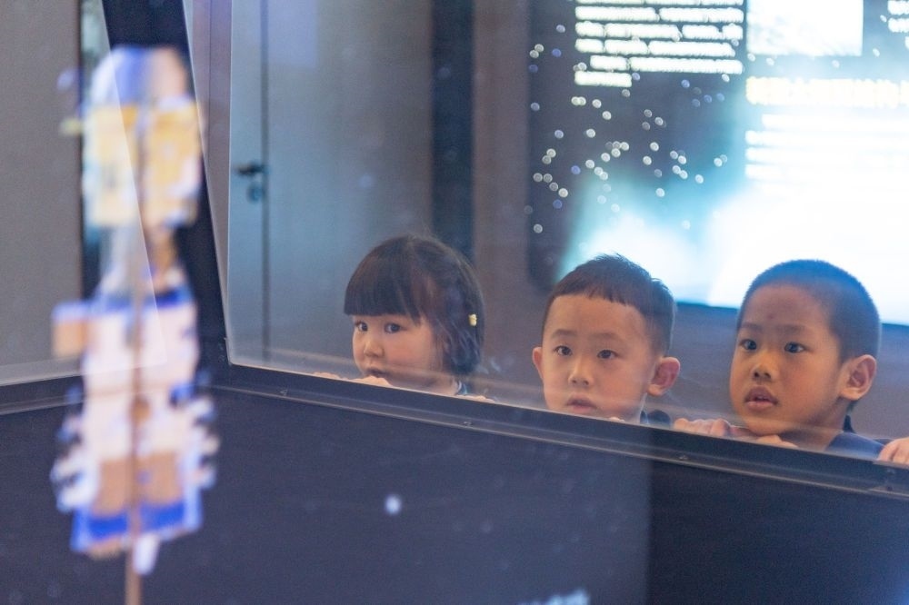2024年4月24日,小朋友在哈爾濱工業(yè)大學(xué)航天館內(nèi)參觀。航天館是哈爾濱工業(yè)大學(xué)重要的教學(xué)基地,也是向社會(huì)公眾開展航天國防教育、弘揚(yáng)航天精神的重要場(chǎng)所,被授予首批全國科普教育基地、首批國家航天局航天科普教育基地、全國中小學(xué)生研學(xué)實(shí)踐教育基地等。