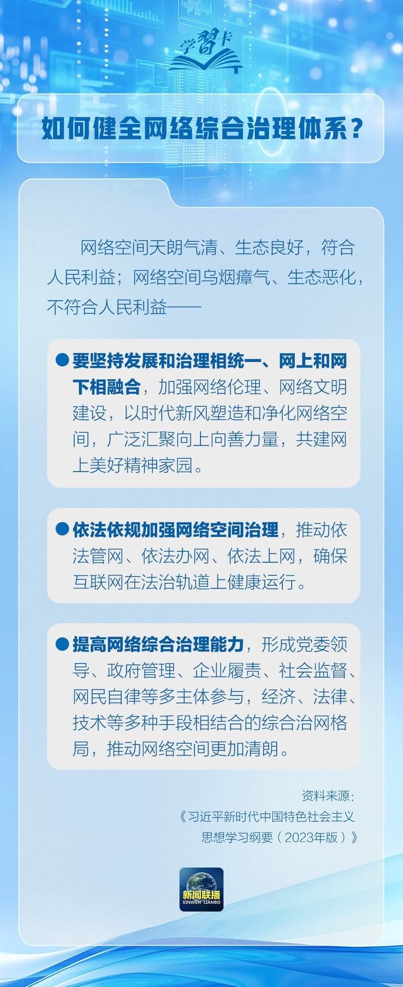 習近平總書記在《關于〈中共中央關于進一步全面深化改革、推進中國式現代化的決定〉的說明》中強調要健全網絡綜合治理體系。
