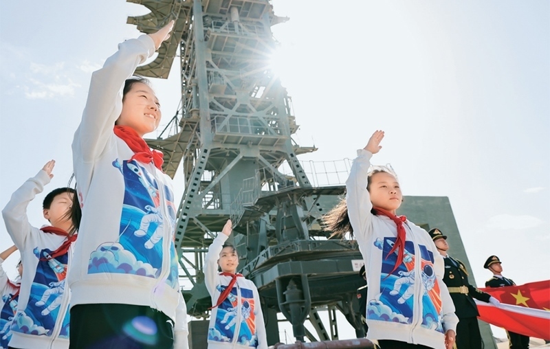 少先隊(duì)是建設(shè)社會主義和共產(chǎn)主義的預(yù)備隊(duì)。廣大少先隊(duì)員在少先隊(duì)這所大學(xué)校里立志向、修品行、練本領(lǐng),從小培養(yǎng)熱愛黨、熱愛祖國、熱愛人民的情懷,展現(xiàn)出朝氣蓬勃的精神風(fēng)貌。2024年4月24日是第九個“中國航天日”,“紅領(lǐng)巾愛祖國——我心中的五星紅旗”主題活動在中國酒泉衛(wèi)星發(fā)射中心東方紅衛(wèi)星發(fā)射場舉行。圖為當(dāng)日,來自內(nèi)蒙古、甘肅、四川等地的少先隊(duì)員在中國酒泉衛(wèi)星發(fā)射中心東方紅衛(wèi)星發(fā)射塔架下敬隊(duì)禮。 新華社記者 金立旺/攝