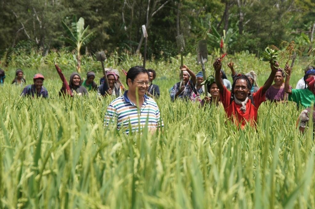 △ 2019年12月17日,首次參與中國援巴新旱稻項(xiàng)目的巴布亞新幾內(nèi)亞農(nóng)戶,看到自己種植的旱稻長勢(shì)喜人。