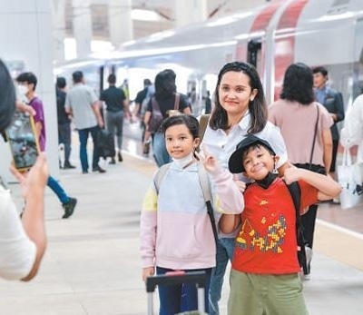 硬聯(lián)通雅萬高鐵是我國在境外完成全過程勘察設(shè)計(jì)建設(shè)的首個(gè)高鐵項(xiàng)目,于去年10月17日正式開通運(yùn)營(yíng),是中印尼共建“一帶一路”合作的典范。圖為乘客在和雅萬高鐵動(dòng)車組合影留念。新華社記者 徐 欽攝