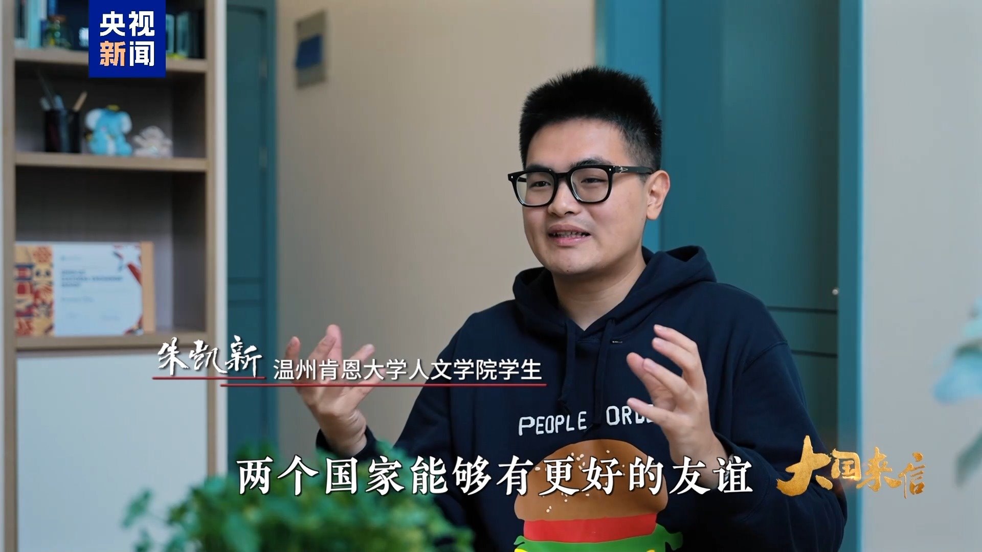 溫州肯恩大學(xué)人文學(xué)院學(xué)生 朱凱新:我也是非常非常期待每一位美國朋友來到我們中國,來到我們真正的這塊土地上去看看我們到底是什么樣子的。我希望能夠讓中國和美國兩個(gè)國家能夠有更好的友誼。