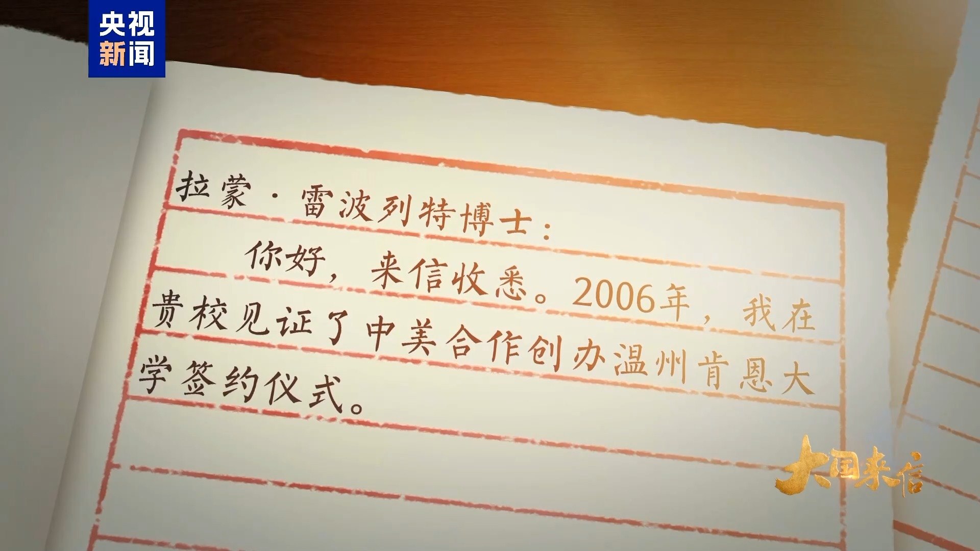 錦書云中來,尺牘傳深情。2006年,時(shí)任浙江省委書記習(xí)近平在美國肯恩大學(xué)見證了中美合作創(chuàng)辦溫州肯恩大學(xué)的簽約儀式。自2014年設(shè)立以來,溫州肯恩大學(xué)不僅培養(yǎng)了數(shù)千名中外學(xué)子,還推動了中美兩國青年一代的友好交流。去年6月,習(xí)主席復(fù)信美國肯恩大學(xué)校長拉蒙·雷波列特,鼓勵(lì)中美兩國高校加強(qiáng)交流合作,為促進(jìn)中美友好貢獻(xiàn)力量。