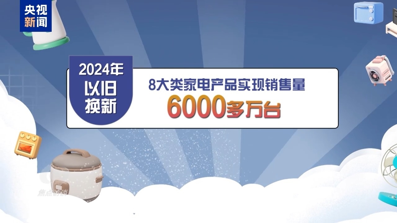 好政策帶來了好成效。以家電市場為例,2024年,中央加力支持以舊換新8大類家電產(chǎn)品實(shí)現(xiàn)銷售量6000多萬臺,直接拉動消費(fèi)超2600億元。