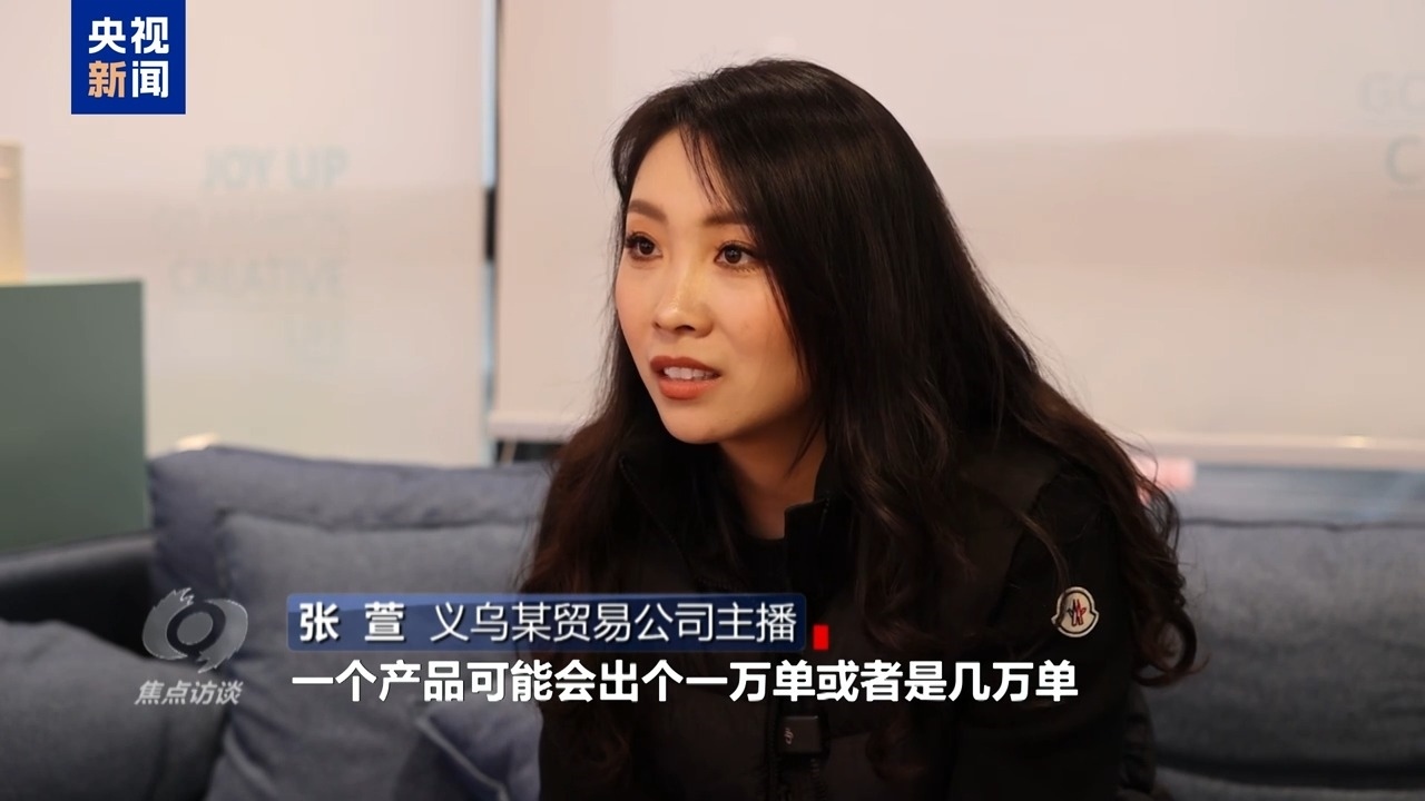 義烏某貿(mào)易公司主播 張萱:一個產(chǎn)品可能會出個一萬單或者是幾萬單,這個時候就感覺到比較震撼。原來消費(fèi)者他們的消費(fèi)能力會這么強(qiáng),所以真的是非常感恩這個時代,感恩所有的消費(fèi)者。