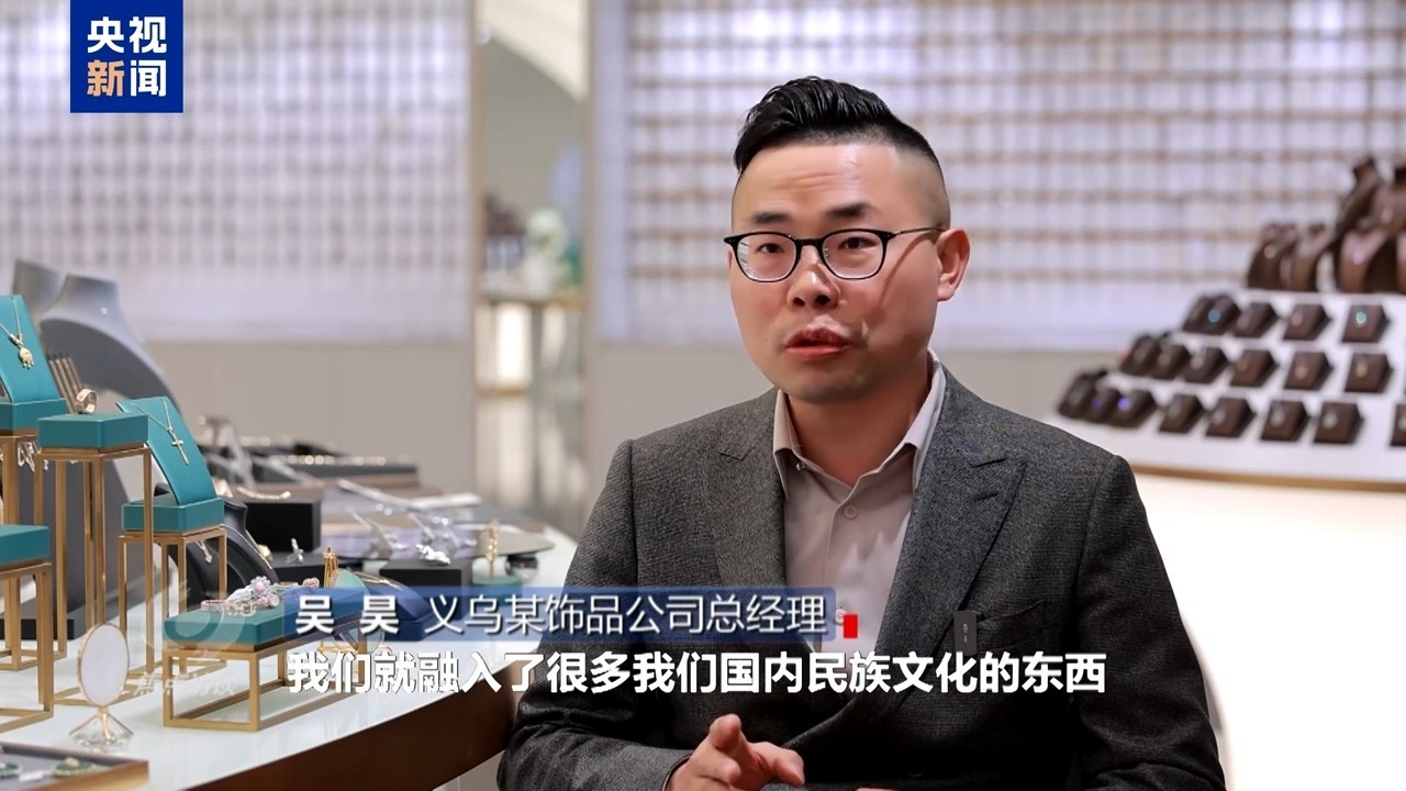 義烏某飾品公司總經(jīng)理 吳昊:在這一塊,融入了很多我們國內(nèi)民族文化的東西,重新組合去創(chuàng)造,他們都會喜歡這個東西。其實(shí)歸根結(jié)底,還是我們通過這么多年的發(fā)展,我們國家人民的日子越過越好的時候,這個民族文化的自信是從國人的骨子里面迸發(fā)出一種自信的體現(xiàn)。