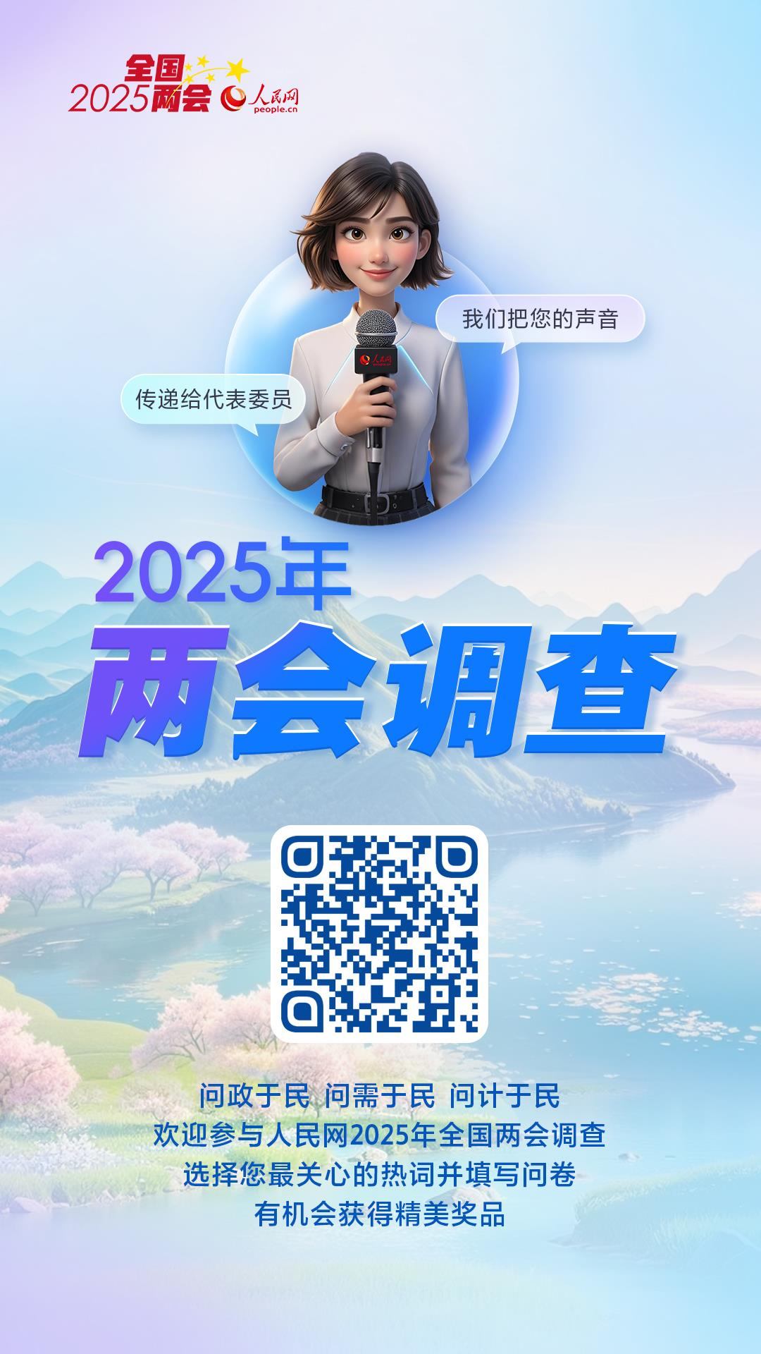 調(diào)查還在火熱進(jìn)行,各界可繼續(xù)通過人民網(wǎng)全媒體通道參與本次調(diào)查。為感謝網(wǎng)友對(duì)人民網(wǎng)2025年全國(guó)兩會(huì)調(diào)查的支持,參與者有機(jī)會(huì)抽取精美獎(jiǎng)品。