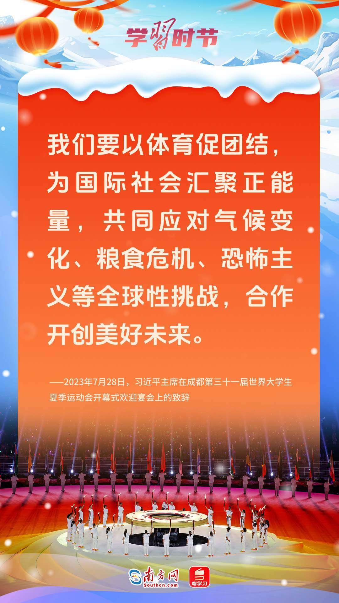 體育是增進(jìn)人民友誼的紐帶,習(xí)近平總書(shū)記多次強(qiáng)調(diào)以體育促進(jìn)團(tuán)結(jié)與和平,推動(dòng)國(guó)之交、民相親。這個(gè)元宵節(jié),讓我們一起重溫習(xí)近平總書(shū)記的深刻話(huà)語(yǔ),以體育精神匯聚團(tuán)結(jié)和平力量。