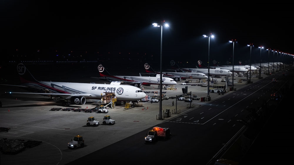 2024年5月25日凌晨,工人在湖北鄂州花湖國際機場停機坪裝卸貨物。鄂州花湖國際機場于2022年7月建成投運,是亞洲首個專業(yè)貨運樞紐機場。截至2025年1月26日,鄂州花湖國際機場已開通37條國際貨運航線和66條國內貨運航線。