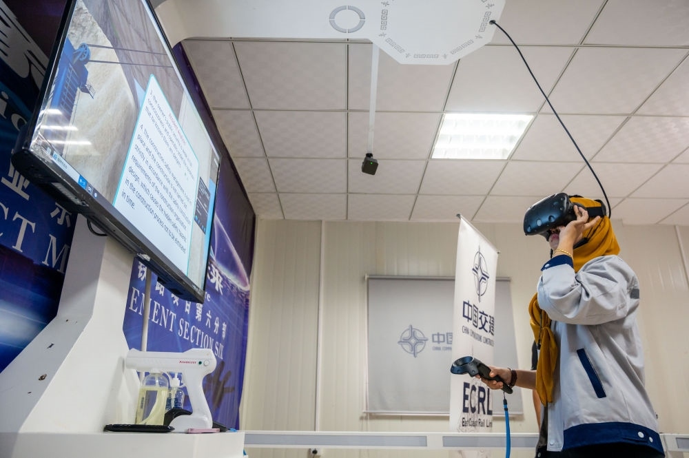 2021年11月9日,在位于彭亨州馬蘭的馬來西亞東海岸鐵路項目安全教育培訓(xùn)中心,一名工作人員借助VR技術(shù)學(xué)習(xí)安全知識。為確保項目安全推進,中國交通建設(shè)集團有限公司在承建的馬東鐵項目沿線設(shè)立了多個虛擬現(xiàn)實和實體體驗安全教育培訓(xùn)中心,借助沉浸式3D技術(shù)與VR設(shè)備,模擬了近百種潛在的施工現(xiàn)場危險情況,有效提升了項目員工的安全意識和技能水平。