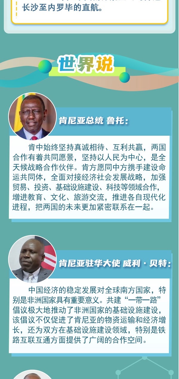 中肯友誼源于古老的海上絲綢之路。新時代以來中肯兩國高層交往密切,政治互信持續(xù)深化??夏醽喐鹘缯J為,肯中合作秉持共同愿景,非洲國家應(yīng)充分發(fā)揮非中合作潛力,攜手建設(shè)更加公平公正、多元繁榮的世界。