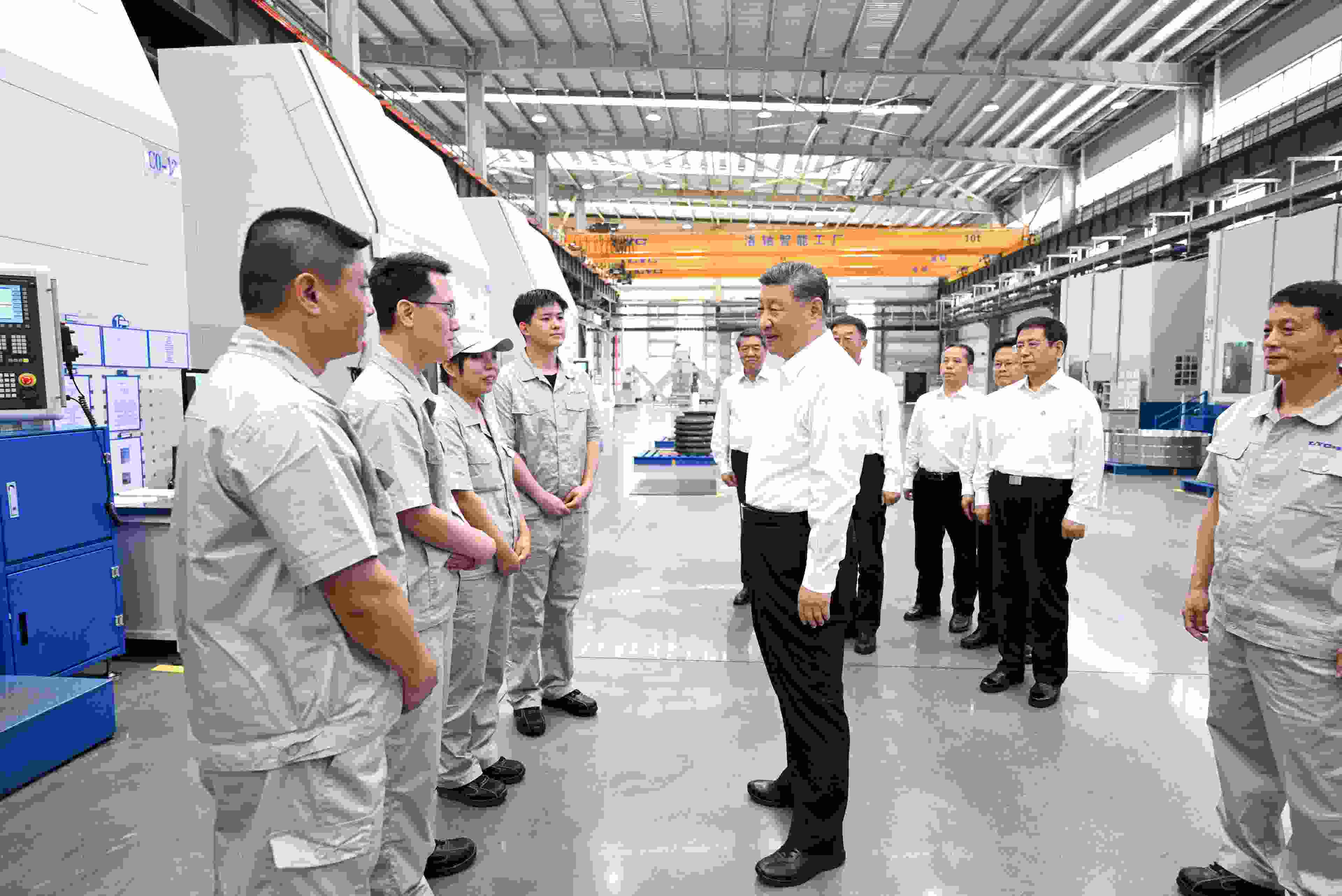 △5月19日,習(xí)近平總書記在河南洛陽軸承集團股份有限公司智能工廠考察時,同企業(yè)職工親切交流。