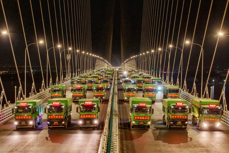 6月20日晚,常泰長(zhǎng)江大橋主航道橋進(jìn)行4400噸荷載試驗(yàn),110輛重型卡車駛上主航道橋面,啟動(dòng)靜態(tài)荷載試驗(yàn)。自6月16日起,常泰長(zhǎng)江大橋開(kāi)啟為期一周的荷載試驗(yàn),對(duì)大橋承載力和安全性進(jìn)行全面評(píng)估。