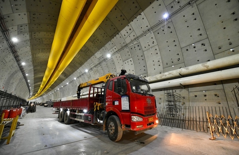 6月22日,施工車輛在濟(jì)南市黃崗路穿黃隧道內(nèi)行駛。