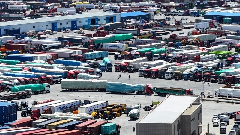 6月22日拍攝的內(nèi)蒙古二連浩特公路口岸(無人機(jī)照片)。