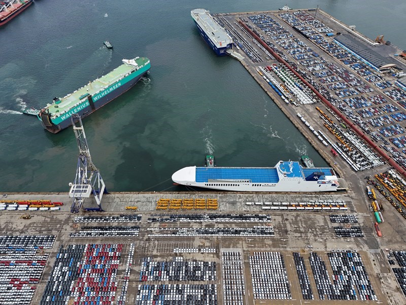 連日來,在山東港口煙臺港,大批出口車輛集結待發(fā),汽車運輸船穿梭往來,一派繁忙景象。今年1—5月,煙臺港完成商品車運量29.6萬輛。目前,煙臺港已實現全球主要商品車碼頭全覆蓋、全聯通,形成“以航線帶貨源、以貨源促航線”的良性循環(huán)。