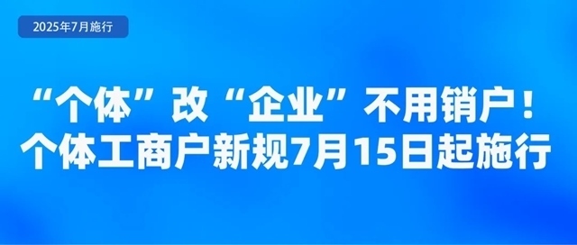 市場監(jiān)管總局近日發(fā)布《個(gè)體工商戶登記管理規(guī)定》,規(guī)定于7月15日起正式施行。規(guī)定明確個(gè)體工商戶可以通過變更登記方式轉(zhuǎn)型為企業(yè),保留統(tǒng)一社會(huì)信用代碼、成立時(shí)間、名稱字號(hào)和相關(guān)行政許可。規(guī)定完善了登記規(guī)則,個(gè)體工商戶經(jīng)營場所發(fā)生變化時(shí),可以像企業(yè)一樣辦理跨區(qū)域遷移。規(guī)定還明確了個(gè)體工商戶經(jīng)營權(quán)繼承的相關(guān)要求,為老字號(hào)“換人不換招牌”提供制度保障。