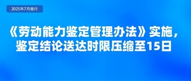 人力資源社會(huì)保障部、國家衛(wèi)生健康委聯(lián)合印發(fā)的《勞動(dòng)能力鑒定管理辦法》,自2025年7月1日起施行。《辦法》明確,工傷職工和因病或非因工致殘申請領(lǐng)取病殘津貼人員申請勞動(dòng)能力鑒定適用本辦法。勞動(dòng)能力鑒定分為初次鑒定和再次鑒定,對初次鑒定不服可以申請?jiān)俅舞b定,再次鑒定為最終結(jié)論?!掇k法》強(qiáng)調(diào),要加強(qiáng)便民服務(wù),減少不必要材料,信息共享能夠獲取的申請材料不得要求申請人重復(fù)提交;壓縮鑒定時(shí)限,將結(jié)論送達(dá)時(shí)限從20日壓縮至15日;加強(qiáng)無障礙環(huán)境建設(shè),完善無障礙服務(wù)設(shè)施設(shè)備。
