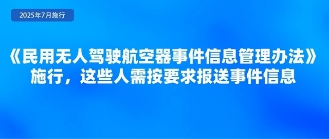為規(guī)范民用無人駕駛航空器事件信息的管理,準(zhǔn)確掌握有關(guān)無人駕駛航空器安全運(yùn)行信息,及時(shí)發(fā)現(xiàn)安全隱患,控制運(yùn)行風(fēng)險(xiǎn),日前,民航局印發(fā)《民用無人駕駛航空器事件信息管理辦法》,自7月1日起施行。《辦法》要求,特定類和審定類合格證持有人、擁有中型和大型無人駕駛航空器50架(含)以上的開放類合格證持有人、擁有大型無人駕駛航空器10架(含)以上的開放類合格證持有人應(yīng)當(dāng)制定事件信息管理程序,指定滿足條件的人員負(fù)責(zé)事件信息管理,并按要求報(bào)送事件信息。事發(fā)相關(guān)單位和人員應(yīng)當(dāng)按照規(guī)定如實(shí)報(bào)告事件信息,不得瞞報(bào)、謊報(bào)或者遲報(bào)。