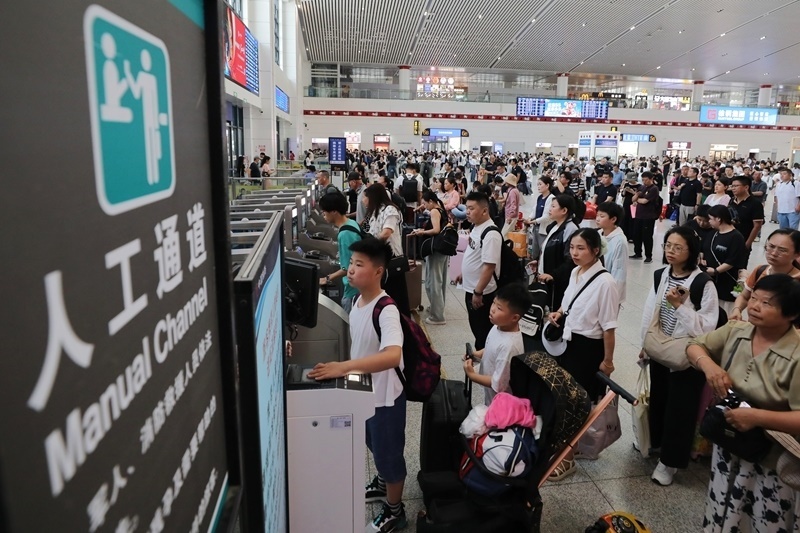 7月1日,旅客在浙江湖州站依次檢票進站。