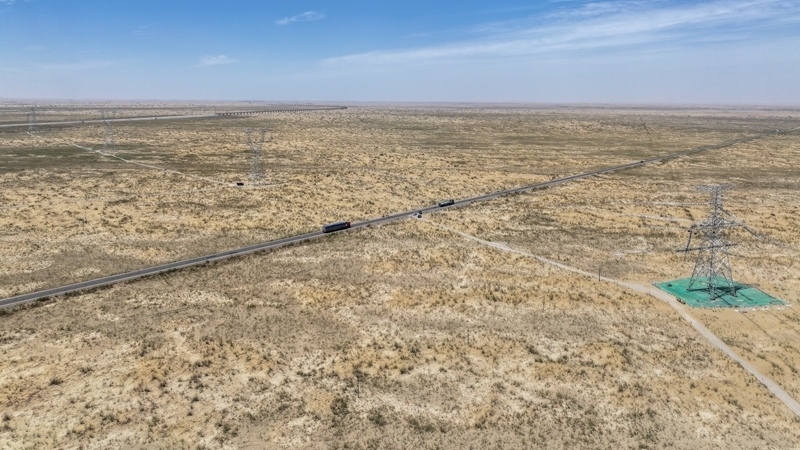 7月13日,在塔里木盆地南緣的新疆和田地區(qū)民豐縣,隨著牽引機將最后一段電線成功從183號鐵塔拽至188號鐵塔,標志著歷時15年建設的環(huán)塔里木盆地750千伏輸變電工程全線貫通,形成了一條圍繞塔里木盆地的750千伏超高壓輸電環(huán)網。