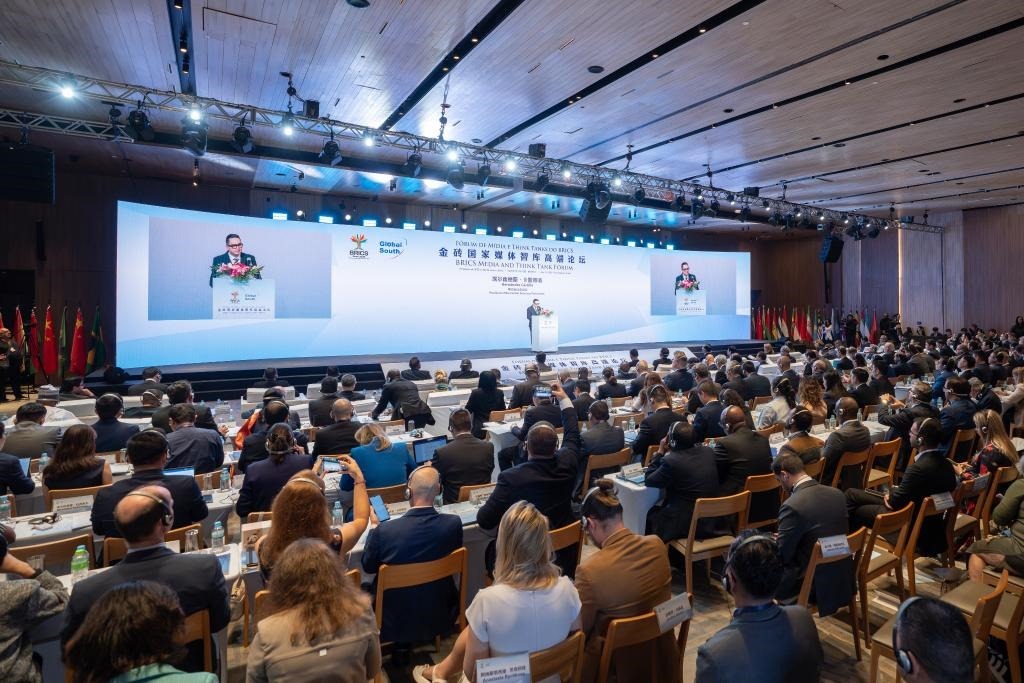 金磚國家媒體智庫高端論壇當?shù)貢r間16日在巴西里約熱內(nèi)盧舉行。來自包括金磚成員國及伙伴國在內(nèi)的36個國家近150家媒體、智庫、政府機構(gòu)和企業(yè)以及中美洲議會等地區(qū)組織的250余名代表出席論壇,共話金磚國家媒體智庫在世界變局中的責任與擔當。