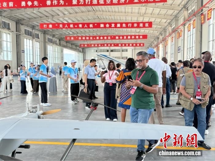 7月16日,在江西省贛州市南康區(qū)低空經(jīng)濟產(chǎn)業(yè)園,外媒記者參觀無人機。中新網(wǎng) 黃方 攝