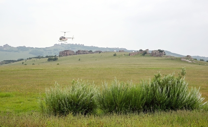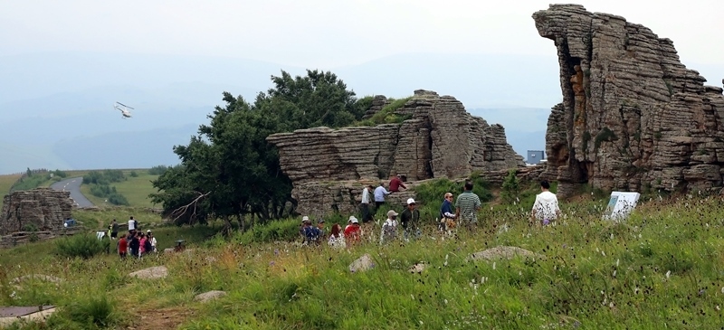 7月24日,空中觀光直升機(jī)從內(nèi)蒙古自治區(qū)赤峰市克什克騰旗阿斯哈圖石林上空飛過。