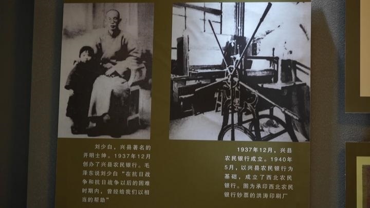 左圖為興縣農(nóng)民銀行的創(chuàng)始人——開(kāi)明士紳劉少白;右圖為承印西北農(nóng)民銀行鈔票的洪濤印刷廠。新華社記者 原勛 攝