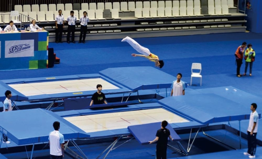 圖為蹦床項目比賽。圖片來自第12屆世運會網(wǎng)上新聞中心