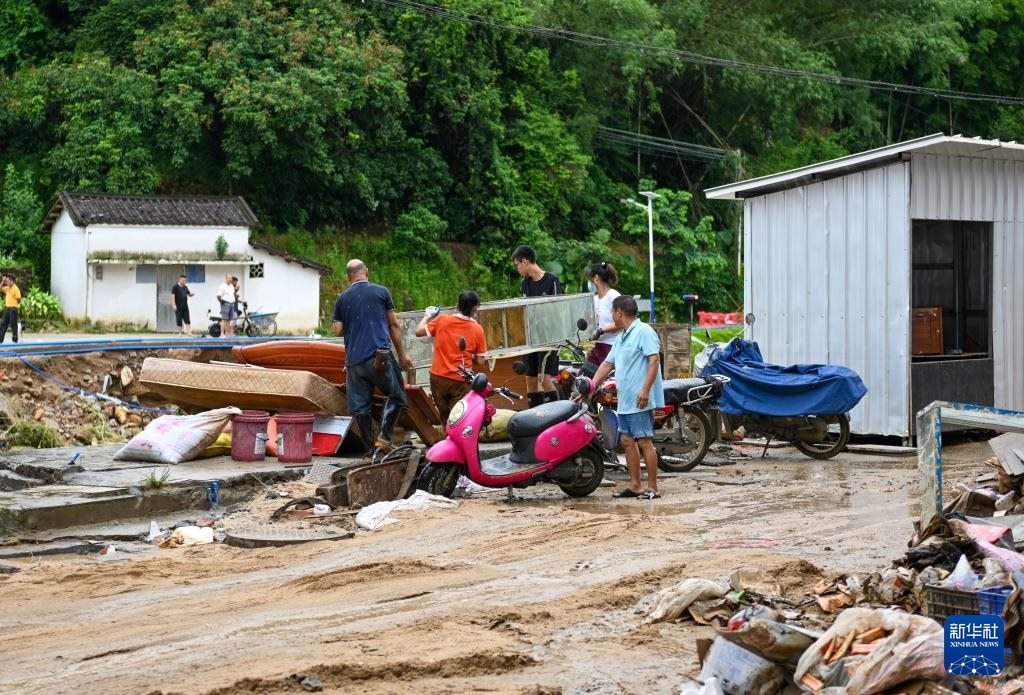 8月6日,村民在廣東清遠佛岡縣石角鎮(zhèn)黃花村搬運受損家具。