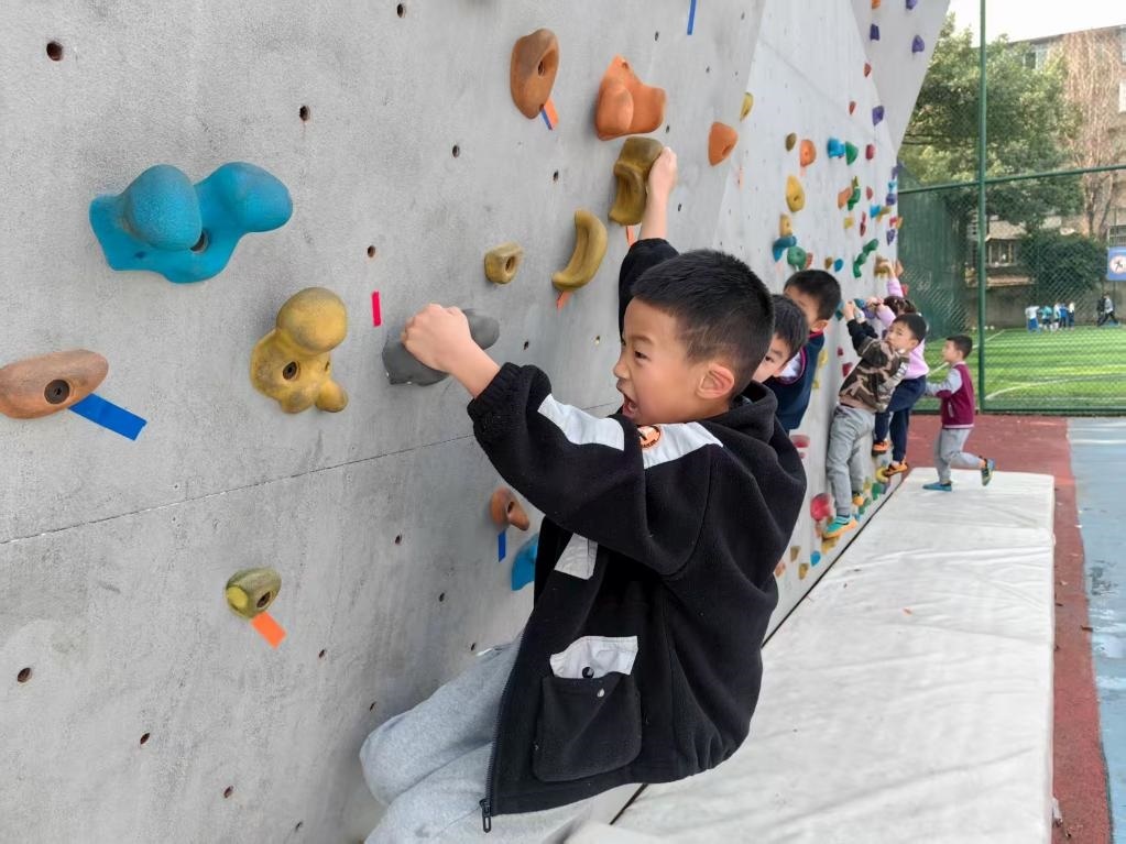 在成華區(qū)嘉祥外國語學校的戶外攀巖場