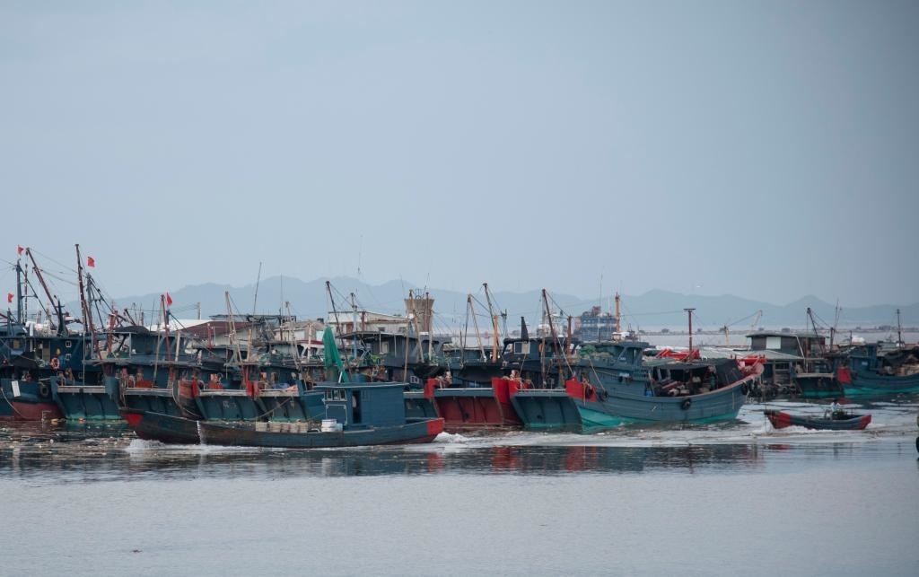 8月13日在廣東潮州市饒平縣三百門漁港拍攝的避風漁船。新華社記者 洪澤華 攝