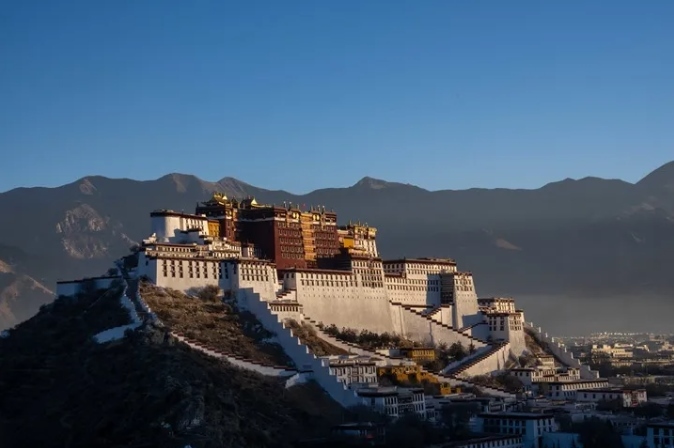 2025年1月1日,拉薩布達拉宮沐浴在晨光之中。新華社記者 旦增尼瑪曲珠 攝