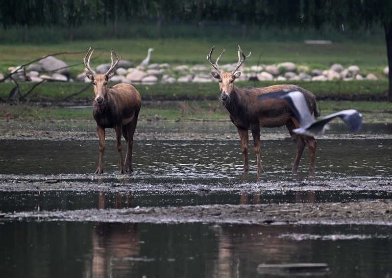 8月18日在北京麋鹿苑拍攝的麋鹿。