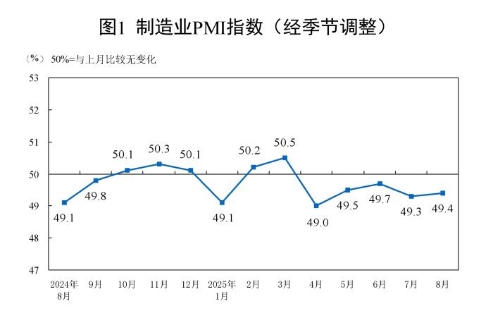 國(guó)家統(tǒng)計(jì)局:8月份制造業(yè)采購(gòu)經(jīng)理指數(shù)為49.4%