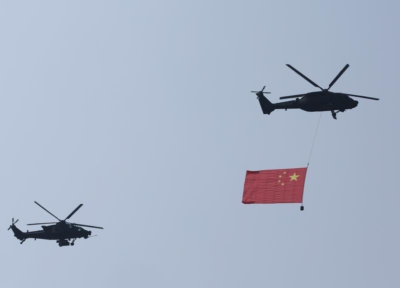 9月3日,紀念中國人民抗日戰(zhàn)爭暨世界反法西斯戰(zhàn)爭勝利80周年大會在北京隆重舉行。這是空中護旗梯隊。
