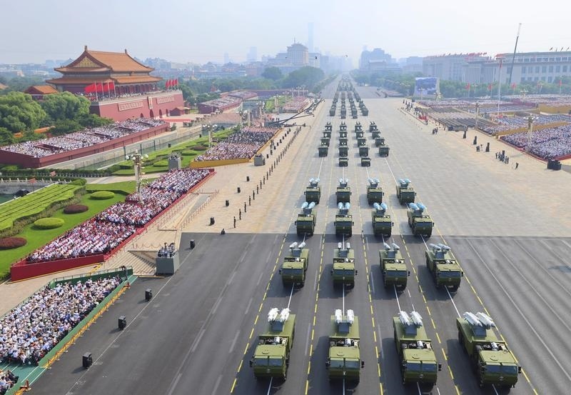 9月3日,紀念中國人民抗日戰(zhàn)爭暨世界反法西斯戰(zhàn)爭勝利80周年大會在北京隆重舉行。這是裝備方隊接受檢閱。