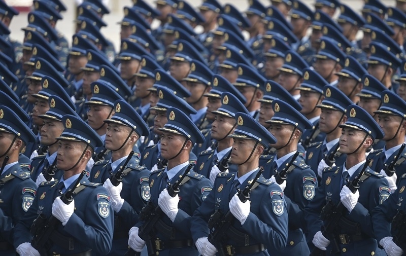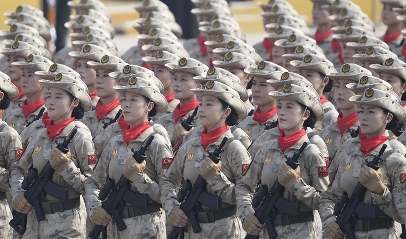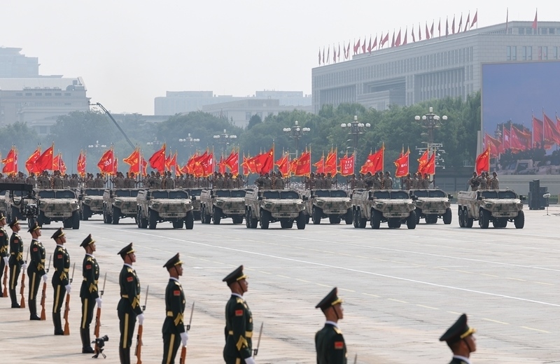 9月3日,紀(jì)念中國(guó)人民抗日戰(zhàn)爭(zhēng)暨世界反法西斯戰(zhàn)爭(zhēng)勝利80周年大會(huì)在北京隆重舉行。這是網(wǎng)絡(luò)空間作戰(zhàn)方隊(duì)接受檢閱。