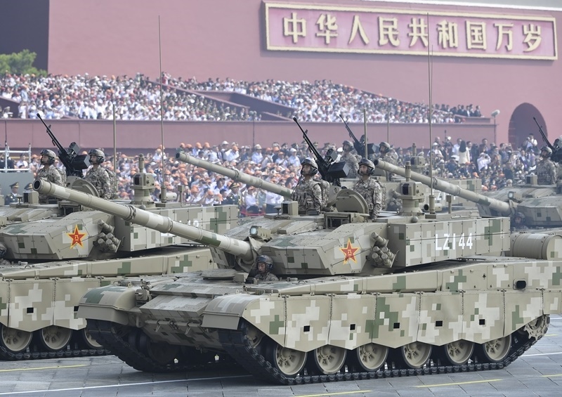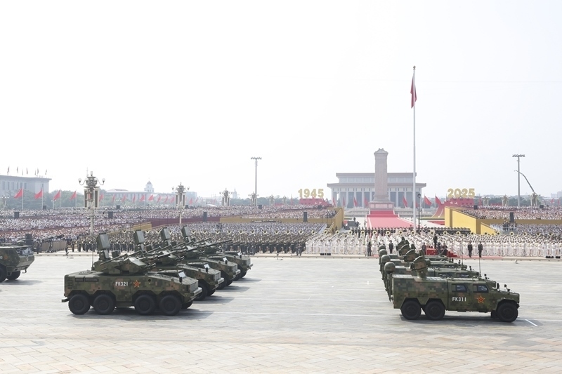 9月3日,紀(jì)念中國(guó)人民抗日戰(zhàn)爭(zhēng)暨世界反法西斯戰(zhàn)爭(zhēng)勝利80周年大會(huì)在北京隆重舉行。這是艦載防空武器方隊(duì)接受檢閱。