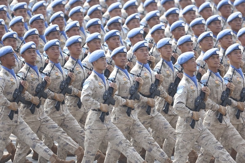 9月3日,紀(jì)念中國(guó)人民抗日戰(zhàn)爭(zhēng)暨世界反法西斯戰(zhàn)爭(zhēng)勝利80周年大會(huì)在北京隆重舉行。這是維和部隊(duì)方隊(duì)通過(guò)天安門(mén)廣場(chǎng)。
