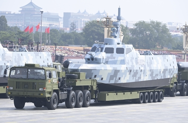 9月3日,紀(jì)念中國(guó)人民抗日戰(zhàn)爭(zhēng)暨世界反法西斯戰(zhàn)爭(zhēng)勝利80周年大會(huì)在北京隆重舉行。這是海上無(wú)人作戰(zhàn)方隊(duì)通過(guò)天安門(mén)廣場(chǎng)。