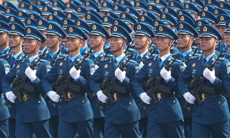 9月3日,紀(jì)念中國人民抗日戰(zhàn)爭暨世界反法西斯戰(zhàn)爭勝利80周年大會在北京隆重舉行。這是網(wǎng)絡(luò)空間部隊方隊接受檢閱。