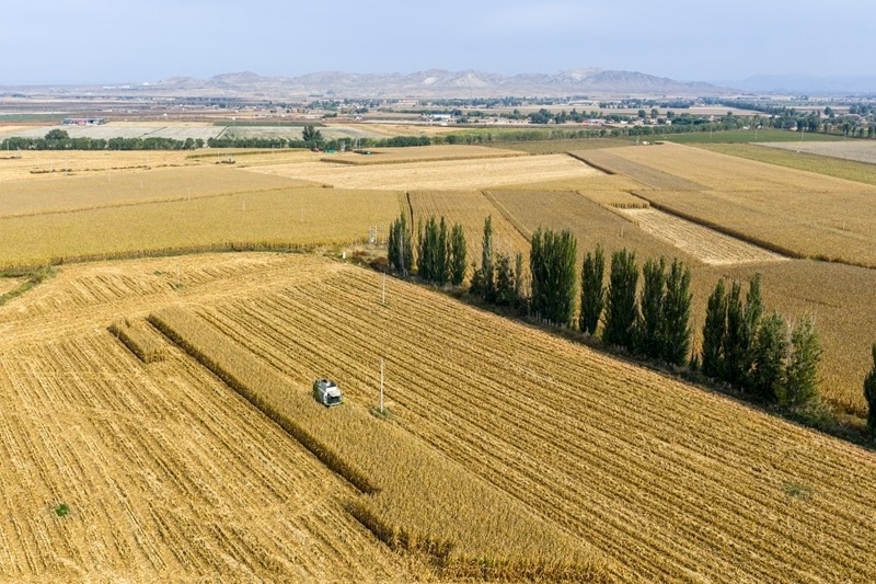 金秋時節(jié),內蒙古巴彥淖爾市烏拉特前旗的玉米迎來豐收,當?shù)貜V泛采用機械化收割與半自動化烘干技術,保障秋收效率。