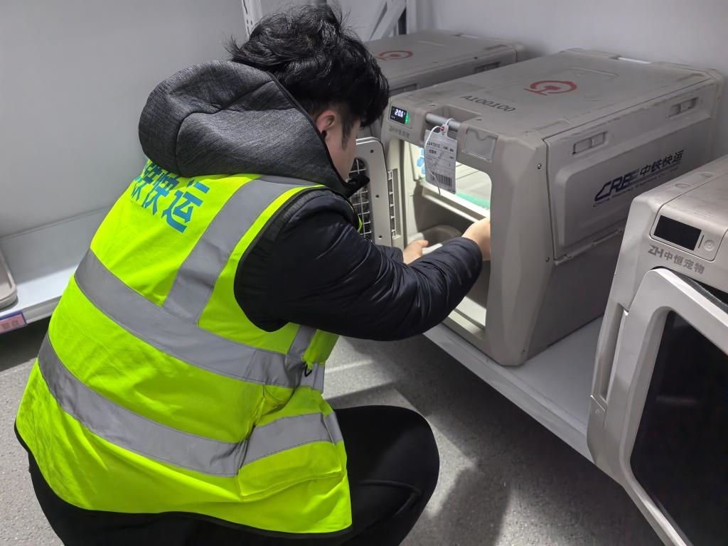 中鐵快運(yùn)太原南站營業(yè)部業(yè)務(wù)負(fù)責(zé)人武鑫介紹:“我們自今年10月啟動(dòng)高鐵寵物托運(yùn)服務(wù)試點(diǎn)以來,已經(jīng)托運(yùn)過寵物貓、寵物狗等。旅客可以在12306官方平臺(tái)或到營業(yè)部現(xiàn)場辦理托運(yùn)業(yè)務(wù)。托運(yùn)前,需要提交相關(guān)部門的檢疫證明。工作人員會(huì)對(duì)寵物運(yùn)輸箱和列車環(huán)境進(jìn)行嚴(yán)格消毒。寵物運(yùn)輸箱內(nèi)還帶有攝像頭,主人可以通過監(jiān)控查看自家寵物的實(shí)時(shí)狀態(tài)。我們配備的工作人員,也會(huì)定時(shí)檢查寵物狀態(tài),提供必要的安撫和飲水?!?/p>