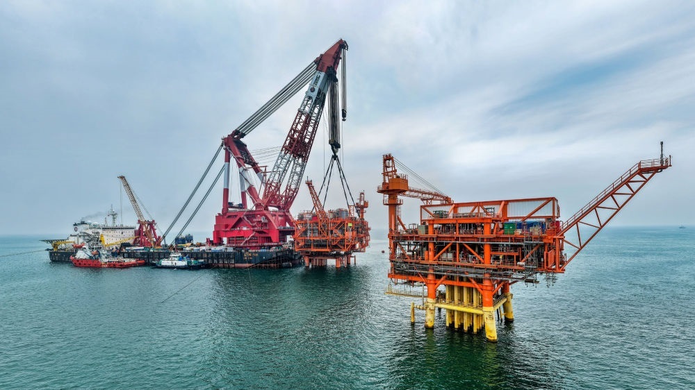9月8日,墾利6-1油田10-1北區(qū)塊Ⅱ期開發(fā)項目油氣平臺在渤海海域完成海上安裝(無人機(jī)照片)。新華社發(fā)(杜鵬輝 攝)