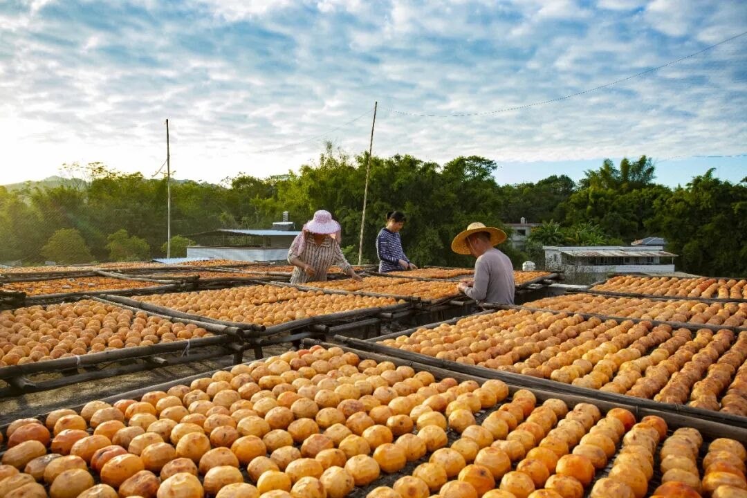 在廣東省梅州市平遠(yuǎn)縣石正鎮(zhèn)中東村,村民正趁晴好天氣曬制柿餅。平遠(yuǎn)縣供銷總公司通過(guò)合作社與農(nóng)戶簽訂收購(gòu)合約,使石正柿花成為當(dāng)?shù)剞r(nóng)民增收致富的特色產(chǎn)業(yè)。馮錫權(quán)攝(影像中國(guó))