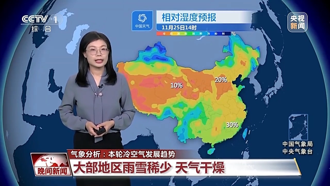 冷空氣帶來的雨雪并不多,而且在偏北風(fēng)吹拂之下,天氣會非常干燥。像是西北華北等地,午后的相對濕度可能只有20%左右,局部地區(qū)甚至不足10%,就連南方相對濕度也只有30%上下,所以整體都會是比較干燥的狀態(tài),大家要及時補(bǔ)充水分,并且注意用火安全。